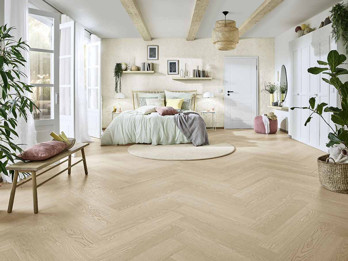 Der Joka Laminat Skyline Herringbone vereint stilvolle Eleganz mit moderner Funktionalität. Das markante Fischgrätmuster verleiht jedem Raum eine besondere Dynamik und sorgt für eine hochwertige, zeitlose Optik. Dank der robusten Oberfläche ist das Laminat strapazierfähig, pflegeleicht und ideal für den Alltag geeignet. Die authentische Holzstruktur unterstreicht den natürlichen Charakter und schafft eine warme, einladende Atmosphäre – perfekt für anspruchsvolle Wohnkonzepte.